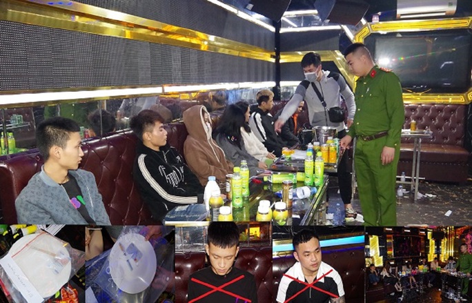 Trong số đó, công an bắt quả tang 13 nam, nữ thanh niên đang có hành vi "bay lắc" tại 2 phòng VIP 4 và VIP 5 và 3 người là quản lý, nhân viên quán karaoke.