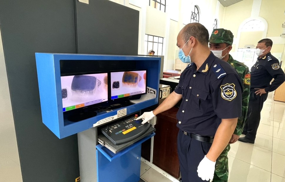 Cụ thể, vào khoảng 8h40 phút ngày 1/8, tại Trạm kiểm soát liên hợp đường bộ cửa khẩu Khánh Bình, đơn vị này đã chủ trì phối hợp với Đồn Biên phòng cửa khẩu Long Bình và Công an huyện An Phú, tỉnh An Giang phát hiện 1 người đàn ông khoảng 40 tuổi xách 1 túi nilon màu đen đi bộ vào đường dành cho phương tiện vận tải xuất cảnh mà không đi vào luồng dành cho hành khách xuất, nhập cảnh theo hướng từ Việt Nam sang Campuchia.