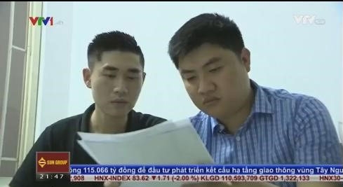 Ông Trần Hữu Tiệp (áo kẻ) trong một lần xuất hiện trên truyền hình trấn an nhà đầu tư. |