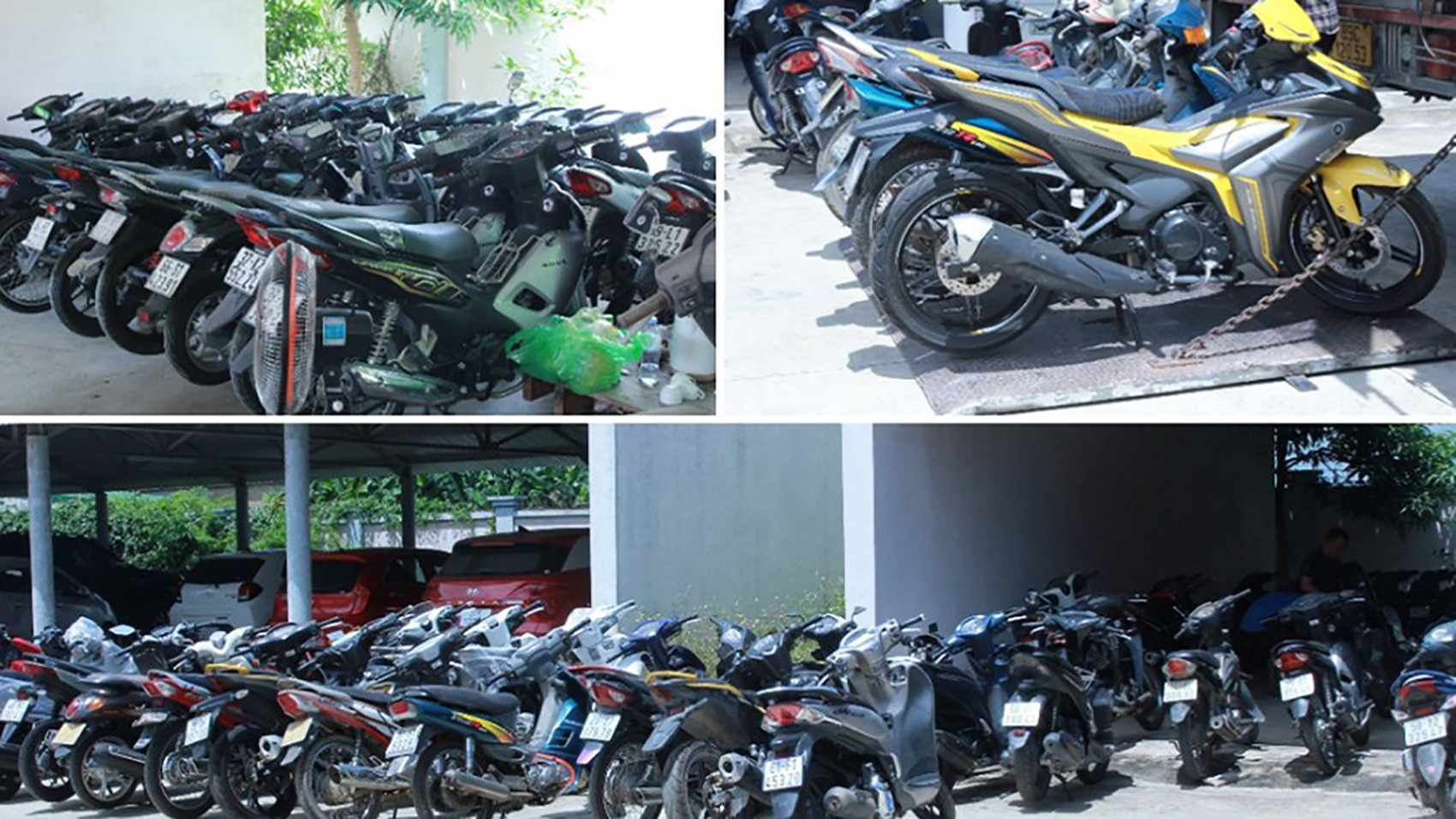 Công an đã thu giữ tang vật gồm 75 xe máy các loại, 2 ô tô tải; 5 vam phá khóa; 25 điện thoại di động; 2 máy tính xách tay; 3 cuốn sổ và nhiều tang vật liên quan.