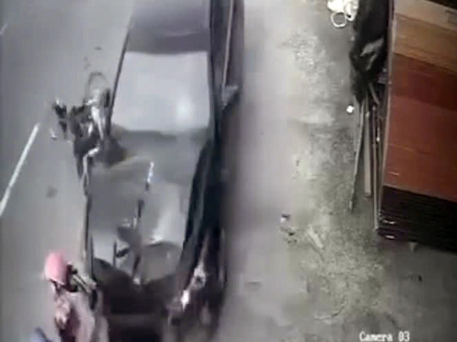 Ô tô của ông Phương tiếp tục va chạm vào xe máy của anh H.Q.P. (37 tuổi) đang đậu trên lề đường. Trên xe của anh P. khi đó có hai bé 9 và 6 tuổi.