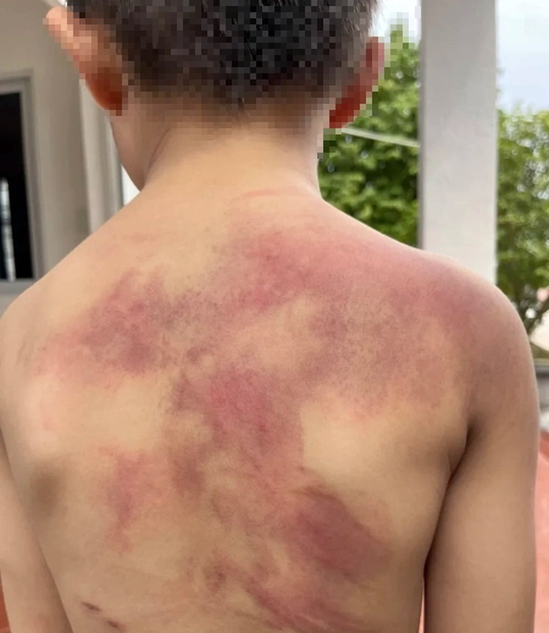 Không chỉ vậy, Minh đưa bé trai ra phòng khách, lấy vá nấu đồ ăn bằng kim loại đánh nhiều cái vào lưng, lòng bàn tay.