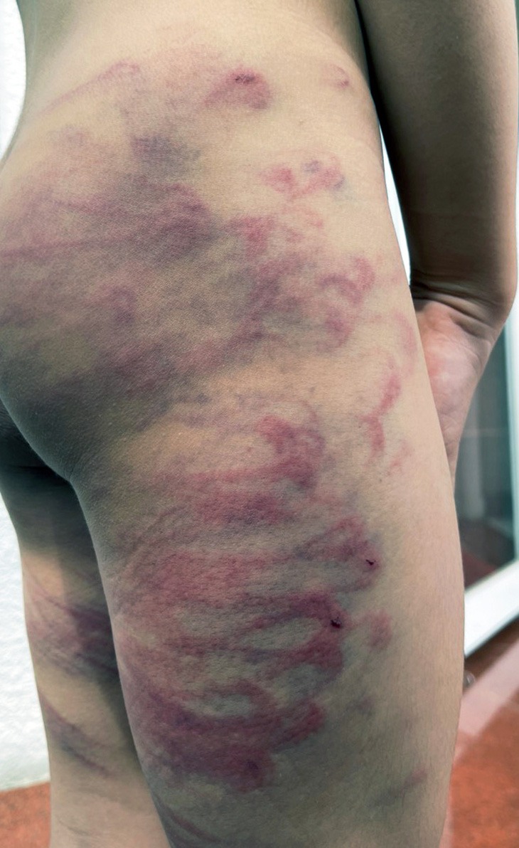 Mới đây ngày 20/10, bực tức vì con trai không chịu học bài, Minh đưa con vào phòng ngủ rồi dùng dây sạc điện thoại đánh nhiều lần vào mông, chân, tay và đầu của cháu Đ..
