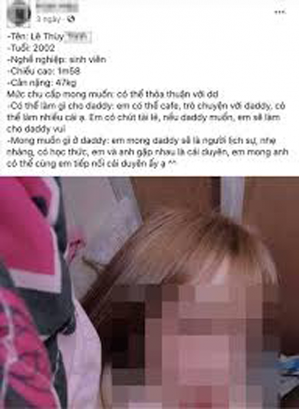 Theo đại diện Bộ Công an, thời gian qua, nhất là thời điểm "hậu COVID-19", hoạt động mại dâm biến tướng dưới dạng "sugar baby - sugar daddy" đang có xu hướng ngày càng phổ biến ở Việt Nam, nhất là thông qua các nhóm kín, diễn đàn kín trên không gian mạng. Hình thức này đã bị biến tướng, bị lợi dụng, tiềm ẩn nguy cơ, khả năng phát sinh tội phạm mại dâm và các vi phạm pháp luật khác.