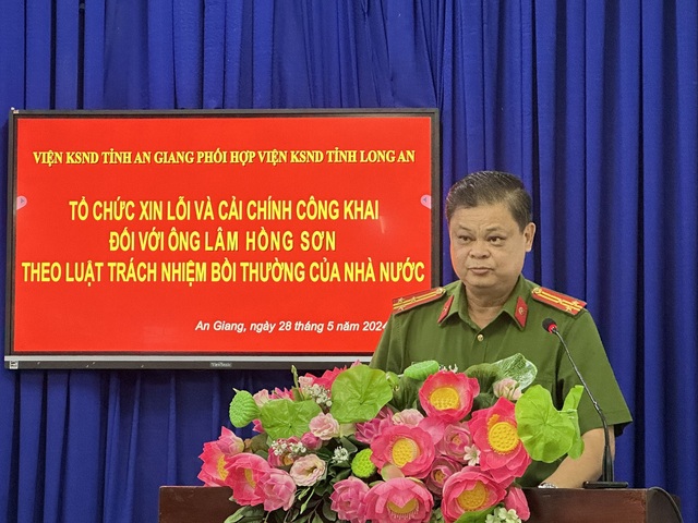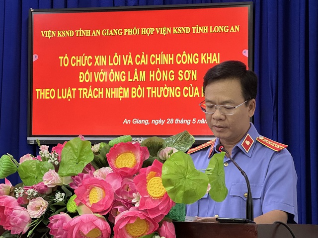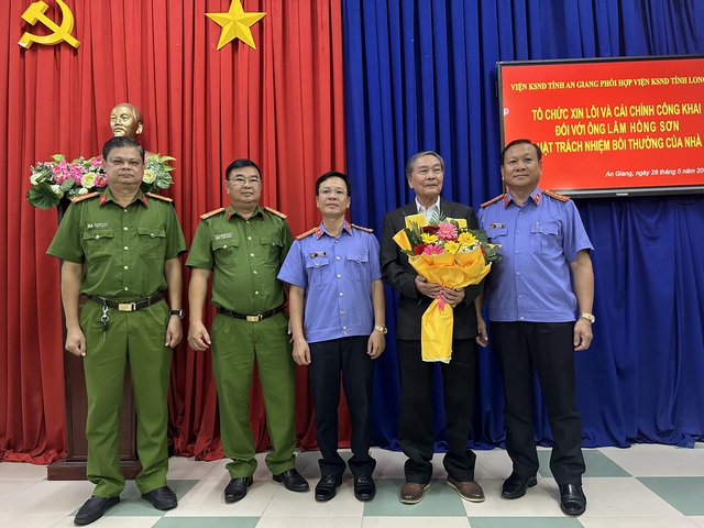 Ngày 28-5, tại UBND phường Vĩnh Mỹ, TP Châu Đốc, tỉnh An Giang, VKSND 2 tỉnh An Giang và Long An tổ chức xin lỗi công khai, phục hồi danh dự cho ông Lâm Hồng Sơn (68 tuổi; Việt kiều Mỹ; hiện ngụ tại quận 1, TP HCM).