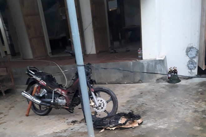Vụ hỏa hoạn khiến 3 xe máy bị đốt, thiệt hại ước tính khoảng 40 triệu đồng. Vụ việc còn khiến 2 người nhập viện do hít phải hóa chất trong quá trình bơm nước từ giếng lên để rửa xe.
