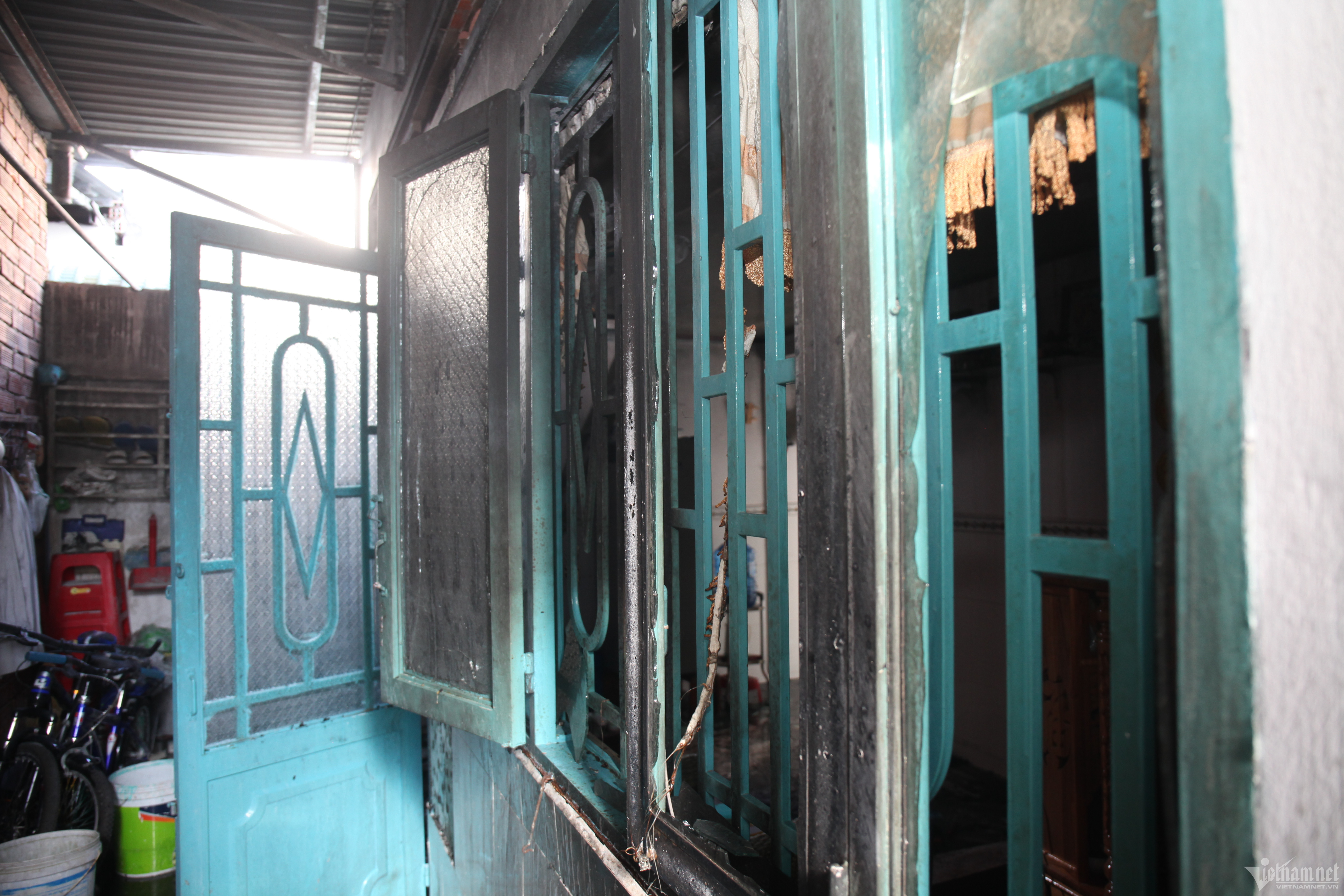 Cũng theo anh Diệp, lúc đó ngọn lửa đã trùm kín khu vực mặt tiền nhà ông Nhiều. Tiếp xúc với nguồn nhiệt lớn, cửa sổ bằng kính cũng bị rạn nứt, vỡ thành nhiều mảnh văng tứ tung.