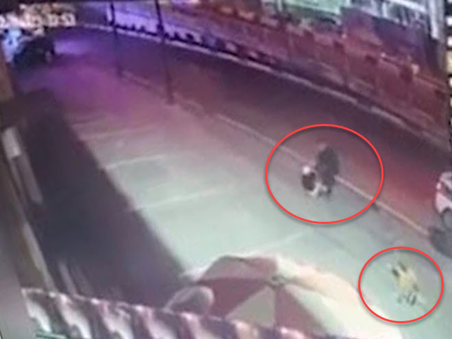 Ngay sau đó, một đối tượng xuống xe taxi xông tới, dùng dao đâm gục nam thanh niên, cưỡng ép cô gái đi cùng lên taxi rồi rời khỏi hiện trường.