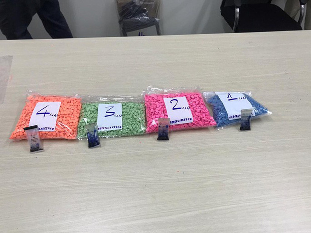 Khi mở bưu phẩm để kiểm tra, hải quan phát hiện và thu giữ tổng cộng hơn 18 kg ma túy tổng hợp dạng viên nén MDMA (thuốc lắc), 124 gram Cocaine và 458 gram cần sa ngụy trang tinh vi trong những bao thư, gói kẹo, ép giữa các thành bao bì carton, loa điện tử, túi treo nhiều ngăn bằng vải... Trị giá hàng vi phạm ước tính gần 60 tỉ đồng.