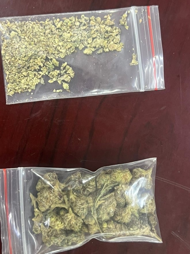 Tổ công tác thu giữ trong túi xách của đối tượng ngồi sau V.T.T (SN 2004, HKTT: Thanh Trì, Hà Nội) 2 túi nilon bên trong chứa thảo mộc khô. Đấu tranh khai thác, đối tượng khai nhận là ma túy cần sa, mang theo để sử dụng.