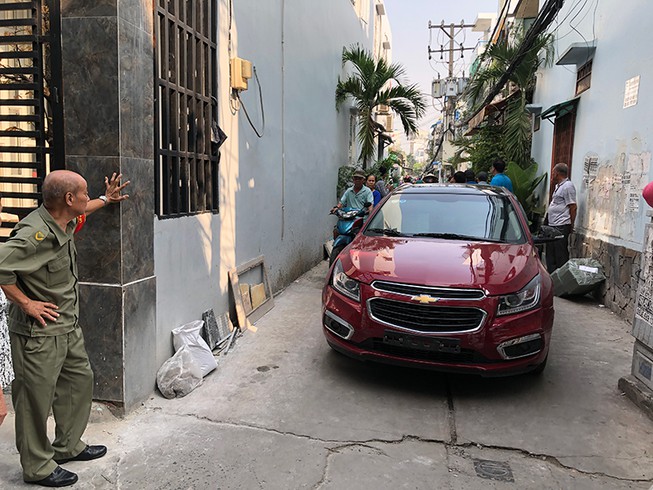 Phát hiện công an, người đàn ông này tông sập cửa nhà và lao xe vào hẻm 1051 Hậu Giang, cách hiện trường ban đầu hơn 1km rồi bỏ trốn.