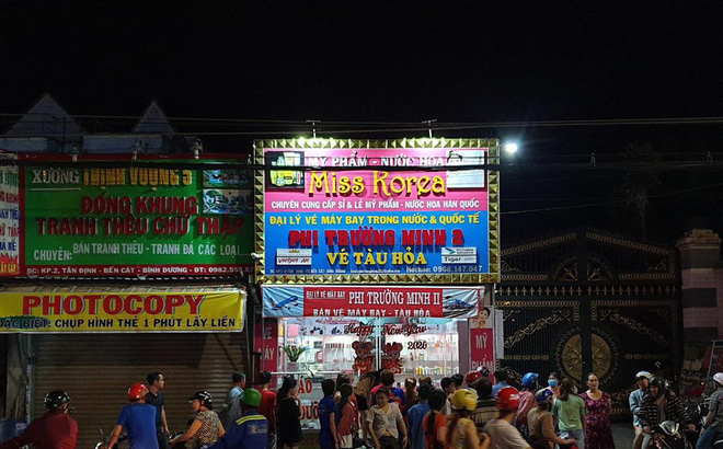 Đến 22h30 tối 18/2, Công an thị xã Bến Cát (tỉnh Bình Dương) vẫn đang phong toả hiện trường vụ nữ chủ đại lý bán vé máy bay, mỹ phẩm bị chém nhiều nhát khiến nạn nhân nằm gục trên vũng máu xảy ra tại khu phố 2, phường Tân Định, thị xã Bến Cát.