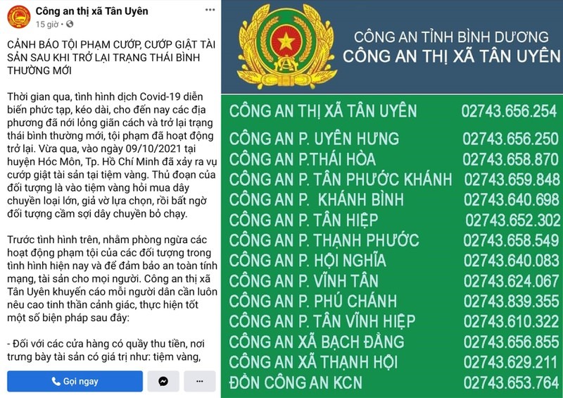 Công an các địa phương cũng niêm yết số điện thoại của công an từng phường, xã để người dân khi phát hiện vụ việc thì báo ngay cho cơ quan công an.