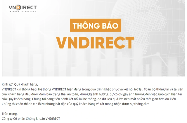 Cũng trong thời gian này, nhiều đội nhóm lợi dụng tung các tin đồn bất lợi ảnh hưởng tới thị trường. VNDirect khẳng định toàn bộ thông tin, tài sản của khách đều được bảo đảm trong trạng thái an toàn, không ảnh hưởng bởi sự cố.