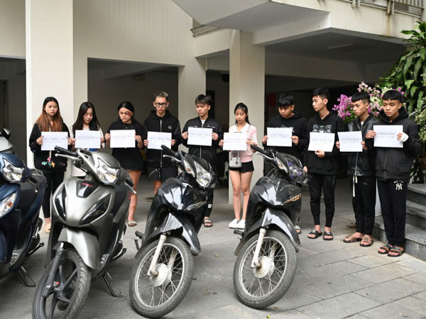 Theo đó, khoảng 0h15’ ngày 3/11/2024, chị N.N.Q (SN 1997, trú tại quận Hoàn Kiếm, Hà Nội) điều khiển xe nhãn hiệu Honda Vision đang đỗ, dừng chờ đèn tín hiệu giao thông tại khu vực ngã tư Trần Hưng Đạo - Bà Triệu. Lúc này một nhóm thanh thiếu niên điều khiển khoảng 30 xe mô tô đi theo chiều ngược lại trên phố Trần Hưng Đạo về ga Hà Nội với tốc độ cao, lạng lách đánh võng.