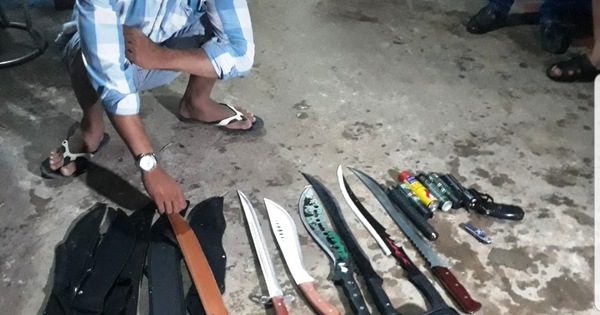 Theo thông tin ban đầu, qua theo dõi nhiều ngày trước, khuya 31-8, công an đã quyết định kiểm tra người và xe máy của Tài khi đối tượng này đang di chuyển trên đường. Khám xét nhanh, trinh sát thu giữ nhiều vũ khí, công cụ hỗ trợ như 6 mã tấu, 1 súng bắn điện và 3 viên đạn, một vật hình khẩu súng rulo, nhiều bình xịt hơi cai.
