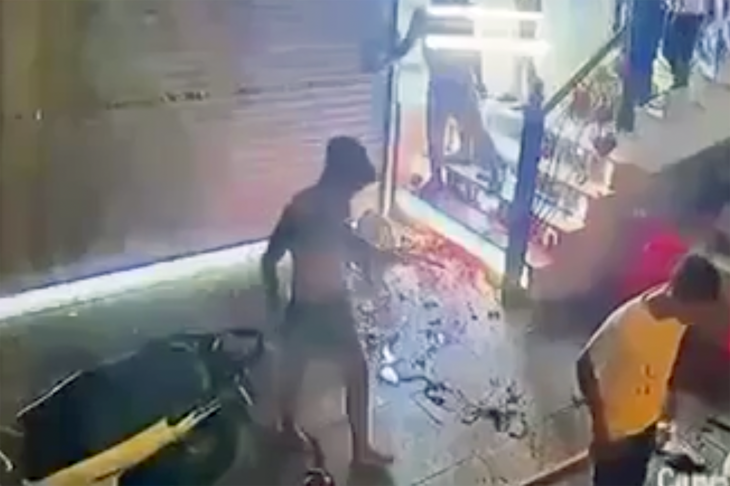Hai nhóm thanh niên la lối, cầm hung khí tấn công và cầm đồ đạt ném vào nhau. Sự việc chỉ dừng lại khi cửa cuốn của quán này đóng lại.