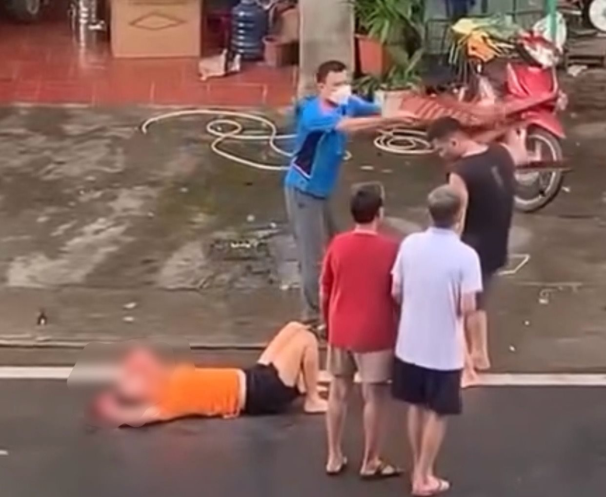 Sau khi chém vợ, T. dùng dao chém vào gáy mình. Lúc này, phát hiện sự việc, một số người dân đã xông tới can ngăn.