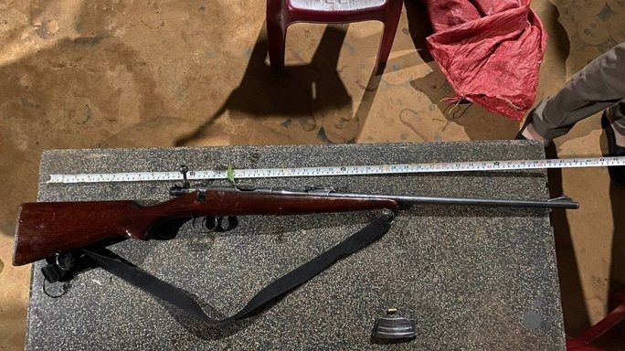 Sau khi nhận được tin báo, cơ quan chức năng đã đến bảo vệ hiện trường, bắt giữ hung thủ, thu giữ tang vật gây án. Tại hiện trường, công an thu giữ khẩu súng tự chế dài 1,09 m, 1 vỏ đạn đã sử dụng và 1 hộp đạn bên trong còn 8 viên đạn.