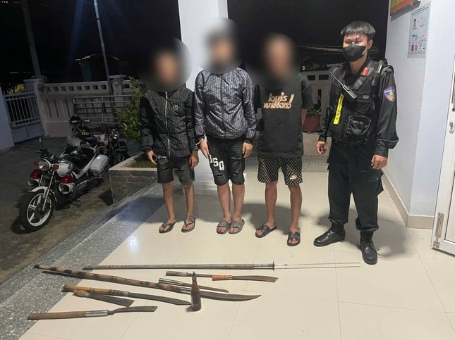 Trước đó, tối 11/3, Tổ tuần tra Phòng Cảnh sát cơ động công an tỉnh Ninh Thuận đang làm nhiệm vụ tuần tra kiểm soát trên tuyến đường Tự Đức, thuộc phường Bảo An, TP Phan Rang - Tháp Chàm phát hiện một nhóm thanh niên khoảng 10 người mang theo nhiều hung khí nguy hiểm đang tụ tập tại khu vực Cầu Móng, phường Bảo An có biểu hiện nghi vấn đánh nhau.