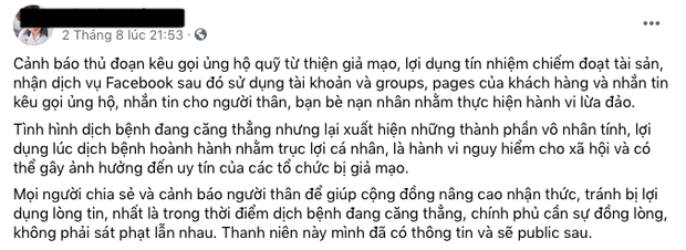 Trên các trang MXH như Facebook, Zalo... tràn ngập các bài đăng kêu gọi ủng hộ cho các hoàn cảnh khó khăn cần giúp đỡ. Tuy nhiên, rất nhiều người đã lợi dụng các hoàn cảnh khó khăn để trục lợi cá nhân, không phải tất cả các bài đăng kêu gọi ủng hộ đều là lừa đảo nhưng bạn cần nâng cao cảnh giác và trao niềm tin vào các cá nhân, tổ chức uy tín.