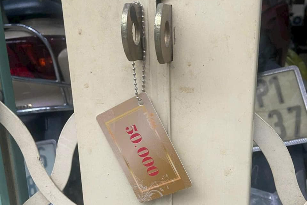 Theo đó, một số đối tượng treo các thẻ nhựa có mệnh giá tiền 30, 50, 100 nghìn đồng trên xe gắn máy của người dân, hay trước cửa nhà dân.