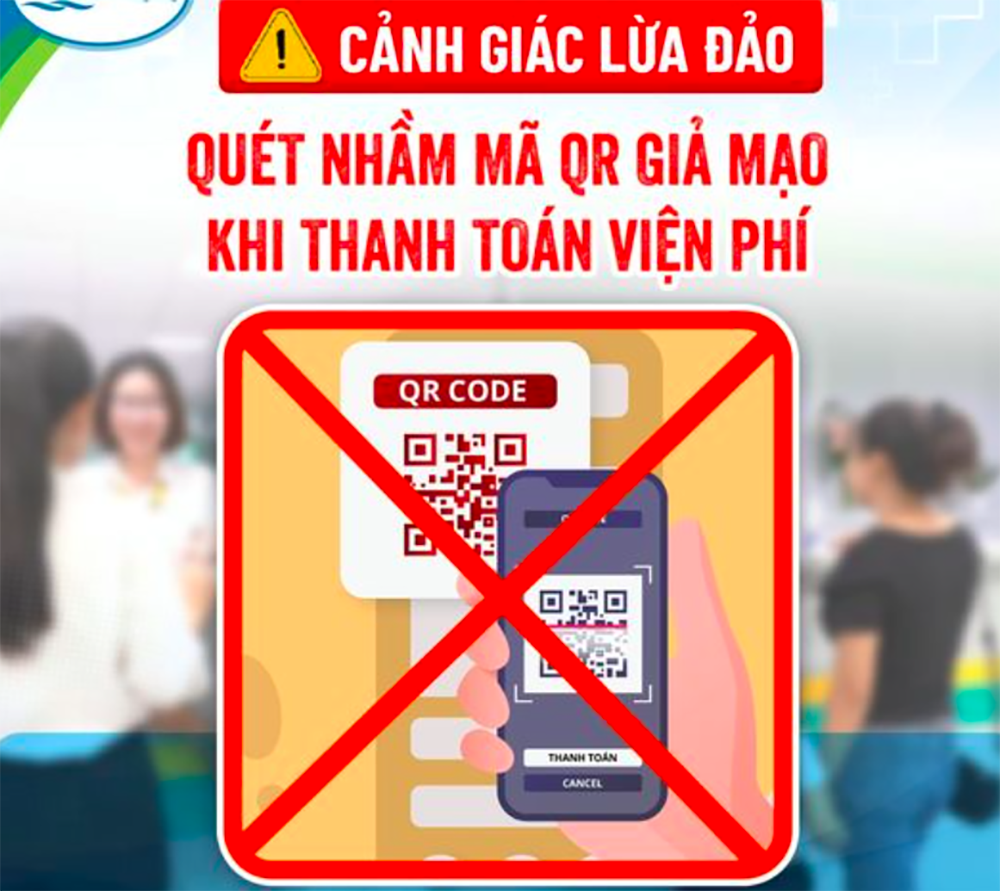Lợi dụng lưu lượng bệnh nhân, khách hàng đông đúc, các đối tượng lừa đảo trà trộn để dán mã QR code của các cá nhân đè lên mã QR code của bệnh viện, hàng quán. Do đó, khi bệnh nhân, khách hàng quét mã để thanh toán, nếu không kiểm tra kỹ lưỡng tên đơn vị, cá nhân thụ hưởng sẽ bị chiếm đoạt tiền một cách dễ dàng.