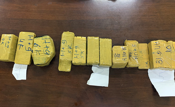 Trong các bao tải và túi nylon có nhiều khối kim loại màu vàng, nặng 51 kg. Bước đầu, nhóm người thừa nhận đây là vàng 24K và họ chỉ chở thuê.