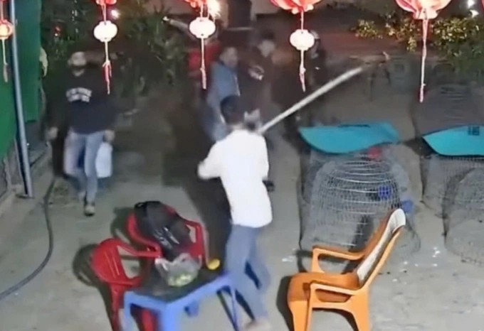 Khoảng 2 phút sau, Bùi Minh Huy rủ thêm các đối tượng Hoàng (anh ruột Huy), Anh, Phát, Thành cầm dao và kiếm tự chế, ghế xông vào đánh, chém anh Tiến.