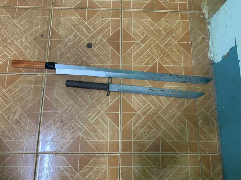 Do bực tức, anh V. về nhà lấy một con dao tự chế (kiếm) để đánh Phú song được mọi người can ngăn kịp thời. Thấy đối thủ định dùng dao đánh mình, Phú cũng về nhà lấy một dao tự chế dài 80cm đi tìm anh V..