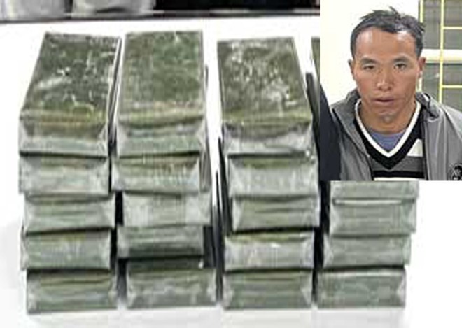 Qua khám xét đã thu giữ 20 bánh heroin do đối tượng cất giấu trong ba lô mang theo. Ban đầu đối tượng đã khai nhận số tang vật là 20 bánh heroin, được mua từ Lào rồi vận chuyển về Việt Nam tiêu thụ.