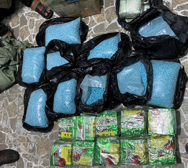 Tại đây, Cảnh sát bắt quả tang các đối tượng N.L.Q, P.T.T.B, N.T.T, T.H.T, thu giữ 14 bánh Heroin. Qua khám xét khẩn cấp nơi ở của các đối tượng, lực lượng Công an thu giữ thêm 90 bánh Heroin, khoảng 100.000 viên thuốc lắc, 70kg MA, 5kg Ketamin và 35 viên đạn; đồng thời đưa 2 đối tượng có liên quan về cơ quan để tiếp tục điều tra làm rõ.