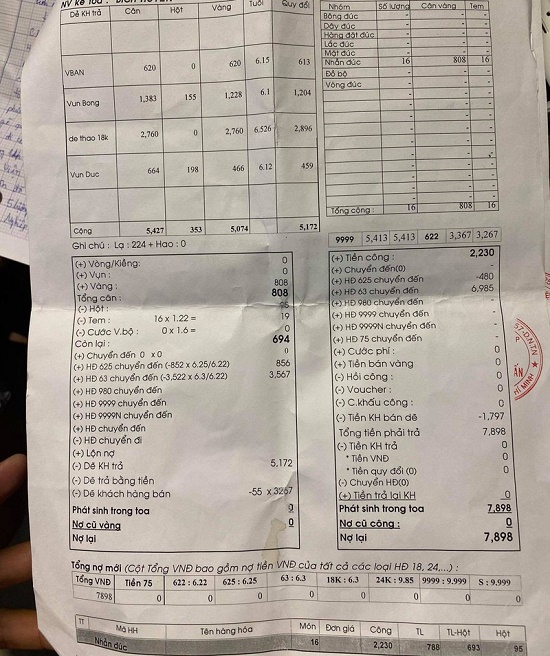“Khi ra về tôi đã quên một túi chứa hơn 5 lượng vàng 18k, vàng 610 của doanh nghiệp Kim Loan Tuấn; một cái bóp màu đen chứa khoảng 7 triệu đồng tiền mặt và nhiều giấy tờ tùy thân, thẻ ATM khác”, anh V. cho biết.