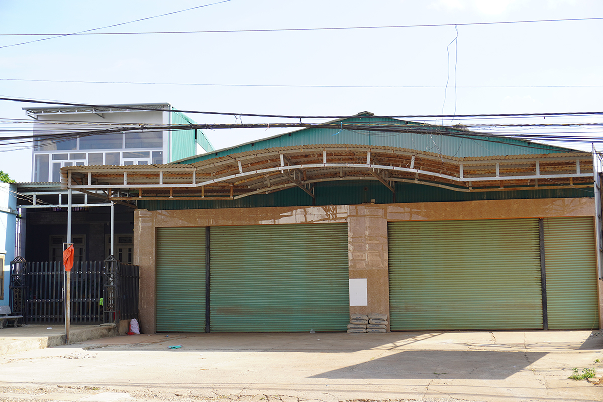 Cách nhà ông Bất hơn 10 km, căn nhà hai tầng và cửa hàng phân bón, vật liệu xây dựng của ông Đỗ Văn Minh ở xã Tân Hà, huyện Lâm Hà, cửa đóng im lìm.