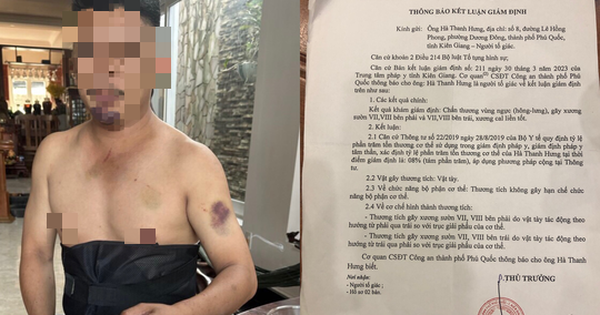 Thông báo kết luận giám định pháp y ngày 11-4 do thượng tá Lê Minh Chánh - Phó Thủ trưởng Cơ quan Cảnh sát điều tra Công an TP Phú Quốc - ký (căn cứ Bản Kết luận giám định số 211 ngày 30-3 của Trung tâm Pháp y tỉnh Kiên Giang) kết luận ông Hưng bị gãy xương sườn số 7,8 bên trái và số 7,8 bên phải; tỉ lệ tổn thương cơ thể là 8%.