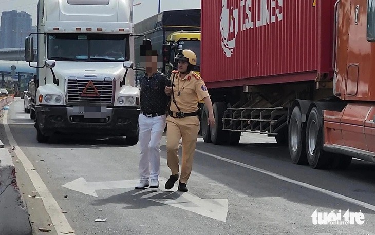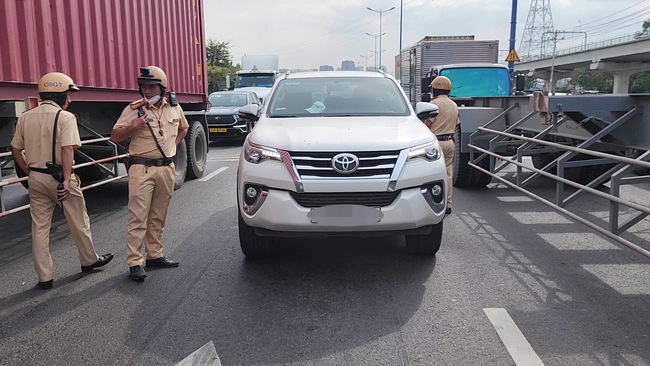 Lúc này, tổ tuần tra Đội CSGT Cát Lái đón lõng, yêu cầu dừng xe nhưng tài xế vẫn tiếp tục chạy. Cảnh sát dùng mô tô đặc chủng đuổi theo.