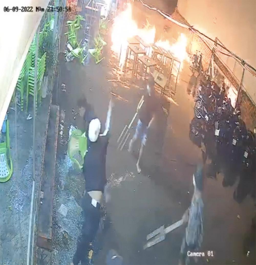 11/06/2022 15:25Clip: Hai cô gái ôm nhau run rẩy ở quán ốc khi nhóm côn đồ xộc vào truy sát, ném bom xăng