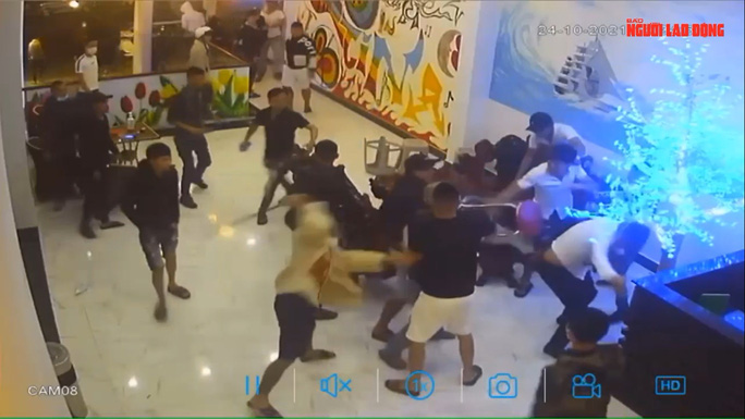 Vụ hỗn chiến kéo dài hơn 10 phút làm 4 người của 2 nhóm bị thương phải nhập viên cấp cứu. Sau đó, một nhóm thanh niên lên nhiều ô tô rời khỏi hiện trường. Nhóm còn lại cố thủ trong quán karaoke Ti Na.
