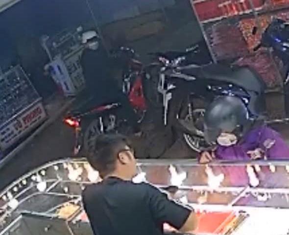 Sau khi chủ tiệm vàng đưa 5 chỉ vàng cho người phụ nữ, đối tượng này đã cầm số vàng chạy lên xe máy cùng người đàn ông tẩu thoát.