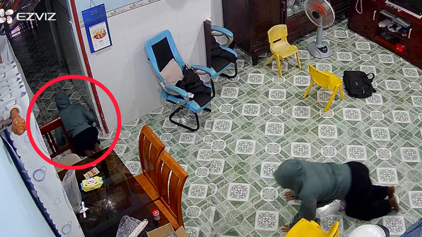 Tên trộm mặc áo trùm kín người, đeo khẩu trang, đột nhập từ bên hông cửa tiệm nail. Tên trộm bò nhẹ nhàng vào bên trong nhà, lục lọi đồ đạc và lấy đi hơn 1 cây vàng,1 triệu đồng tiền mặt và điện thoại - ước tính giá trị lên tới 100 triệu đồng.