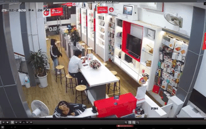 Tối 29/12, trên mạng xã hội xôn xao đoạn clip ghi lại hình ảnh cô gái trẻ vào cửa hàng điện thoại di động trên phố Thái Hà, quận Đống Đa, Hà Nội. Clip ghi lại vào khoảng 20h30 cùng ngày.