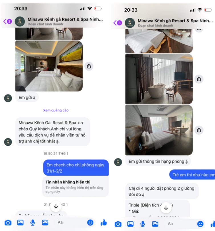 Theo đó, ngày 25/1 vừa qua, người phụ nữ đã nhắn tin cho trang fanpage để hỏi giá phòng nghỉ và bày tỏ mong muốn được đặt phòng từ ngày 31/1 đến 3/1 (Tức ngày mùng 3-mùng Tết) cho cả gia đình 4 thành viên.