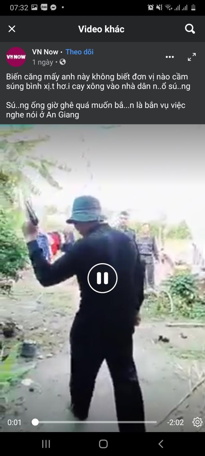 "Lúc đó các anh em có nổ phát súng công cụ hỗ trợ trúng vào tay người phụ nữ. Hiện tại Công an tỉnh đang tiếp tục xác minh làm rõ vụ việc xem người dân có chống đối hay không và nổ súng có đúng quy định hay không. Lực lượng này là công an liên ngành của tỉnh" - thượng tá Đoàn Quốc Dũng - phó trưởng Công an huyện Tịnh Biên, An Giang cho biết.