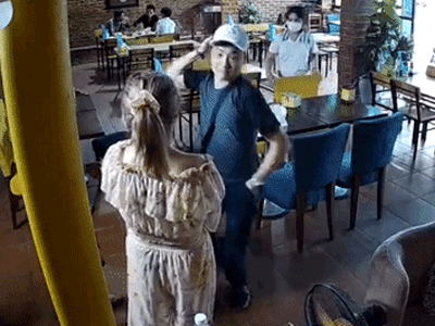 Mặc dù được mọi người trong quán can ngăn, người đàn ông vẫn đe dọa tấn công nữ diễn viên. Chị phải bỏ chạy lên tầng 2.