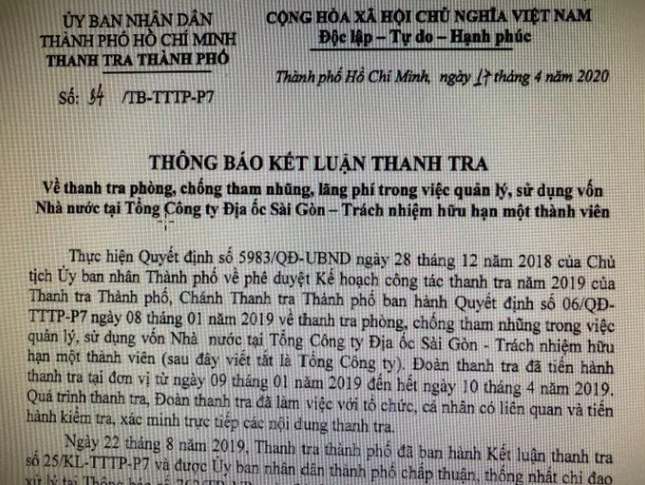 Ngoài ra, một số dự án từ khi phê duyệt dự án đến giai đoạn Thanh tra TP HCM vào cuộc đã hơn 10 năm nhưng chưa được đưa vào khai thác sử dụng, ảnh hưởng đến nguồn vốn doanh nghiệp, gây lãng phí tài sản nhà nước, lãng phí đất đai.