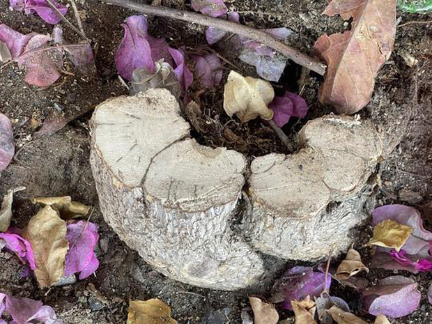 Còn tại Nhà nghỉ Lâm Đường (phường 8, TP.Vũng Tàu) cũng có giàn hoa giấy gốc to, nở hoa quanh năm và được nhiều du khách chọn làm nơi check-in. Nhưng mới đây, một gốc hoa giấy cũng bị cưa trộm và kẻ gian đã lấy đi một phần gốc. Cây đang có dấu hiệu héo úa.
