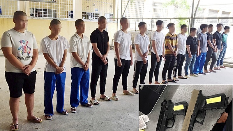 Khi 2 nhóm đang "thị uy" sức mạnh bằng các hung khí trên đường tới điểm hẹn thì bị công an phát hiện truy đuổi và kịp thời bắt giữ một số đối tượng.