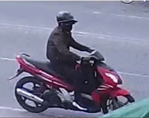 Người này đi xe máy nhãn hiệu Yamaha Nouvo màu đỏ đen, căm đúc màu đen, không biển số.