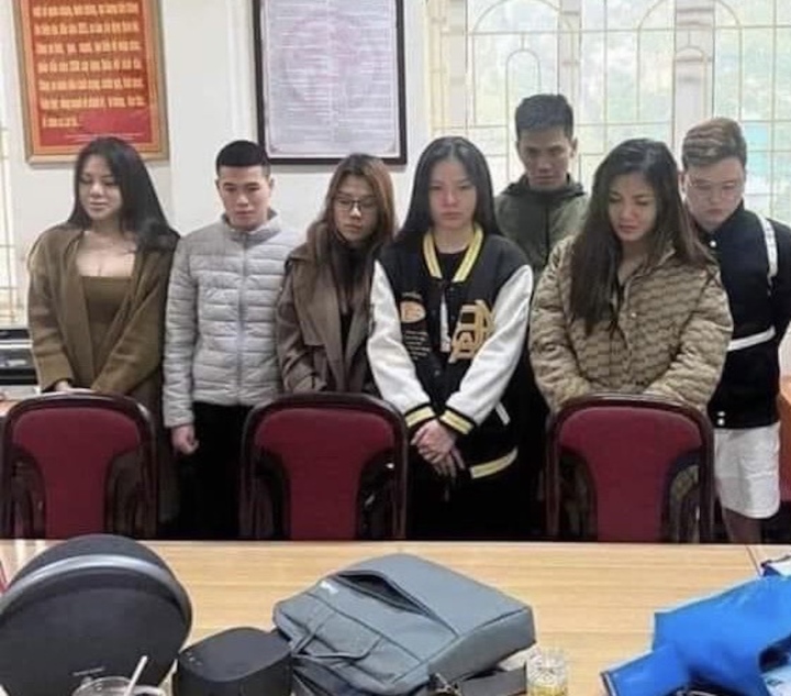 Tiến hành kiểm tra, ở phòng có 7 nam nữ thanh niên, cơ quan công an thu giữ 1 đĩa sứ màu trắng, 1 ống tẩu được cuộn bằng tờ tiền, 1 thẻ ATM ngân hàng, 1 vỏ chai nhựa bên trong chứa một túi nilon màu cam, 1 máy tính, 1 loa, 1 đèn nháy.