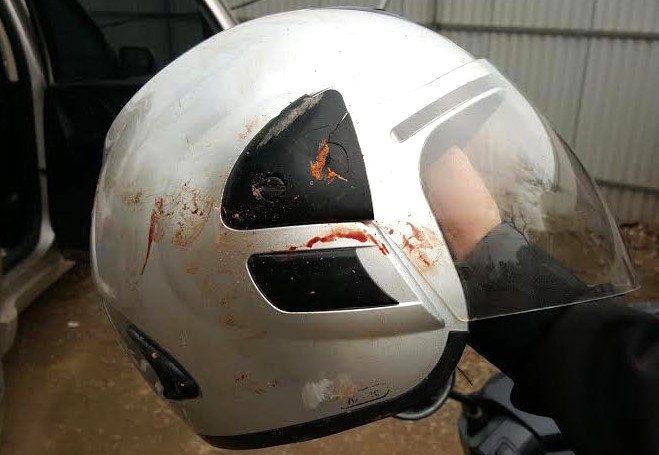 Chiếc mũ bảo hiểm "cứu" nhà báo Đỗ Doãn Doàng khỏi trận đòn hội đồng. Ảnh: C.N. |